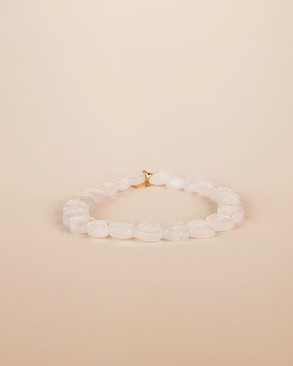 Bracelet with rose quartz hearts on elastic HT