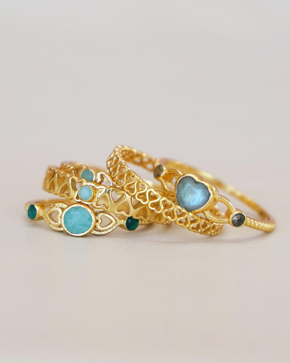I - Ring Adorle size 56 amazonite+gr. agate hearts g.pl