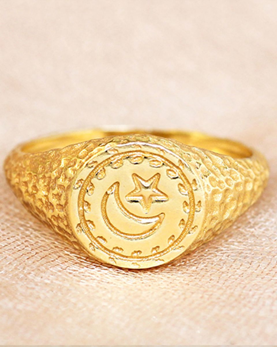 K - ring size 56 moon and star gold plated