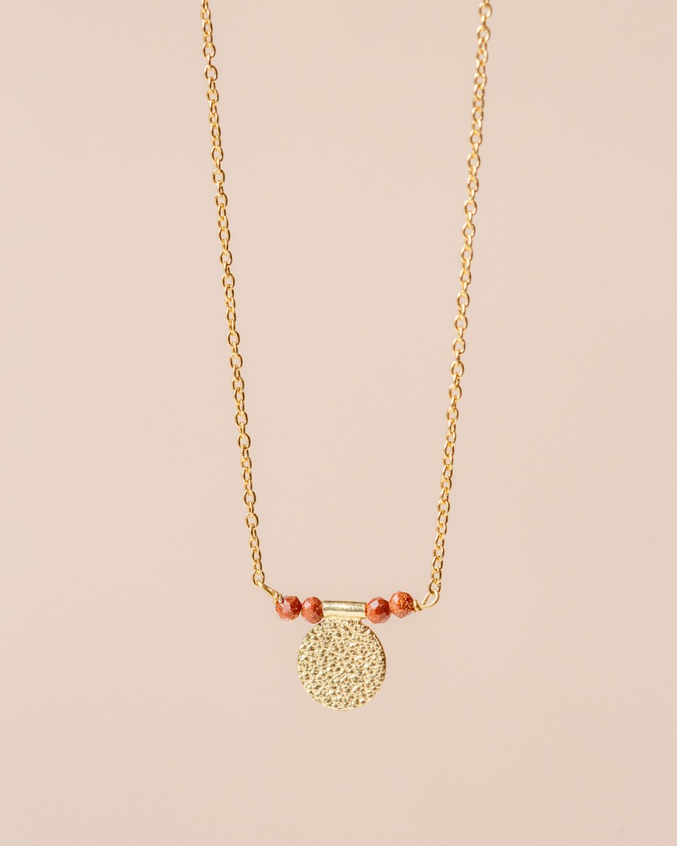 Collier with 2mm bead goldstone and with 1 hammered coin, gold plated