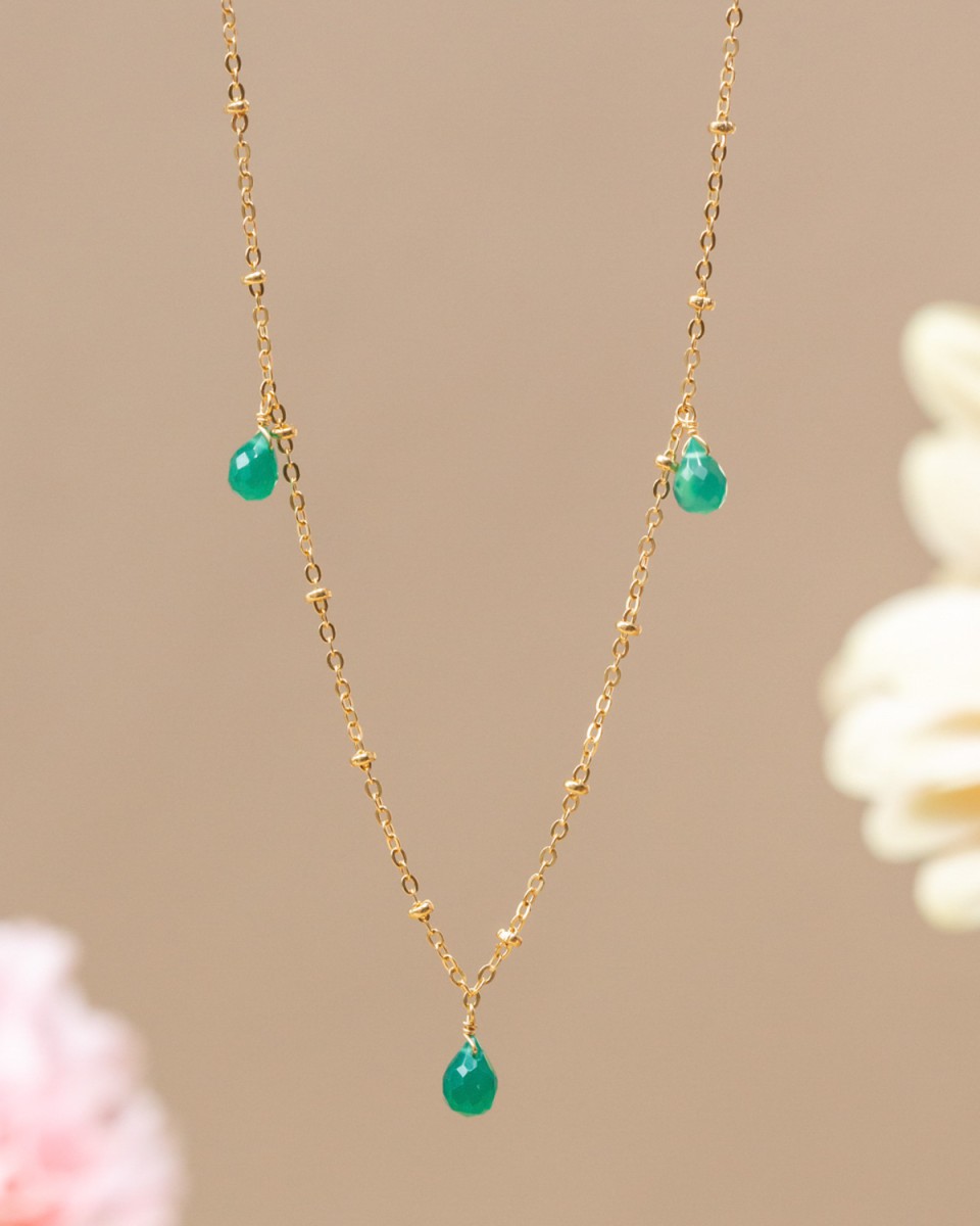 Collier with drops green onyx three stones 45cm gold plated