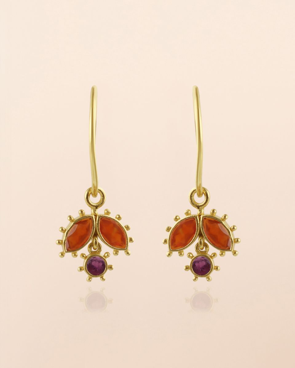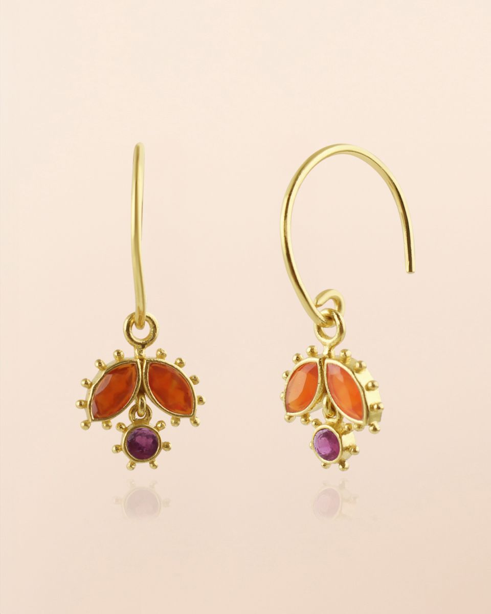 Earring with 2,5x5mm marquise red agate and 2,5mm round ruby with dots, gold plated