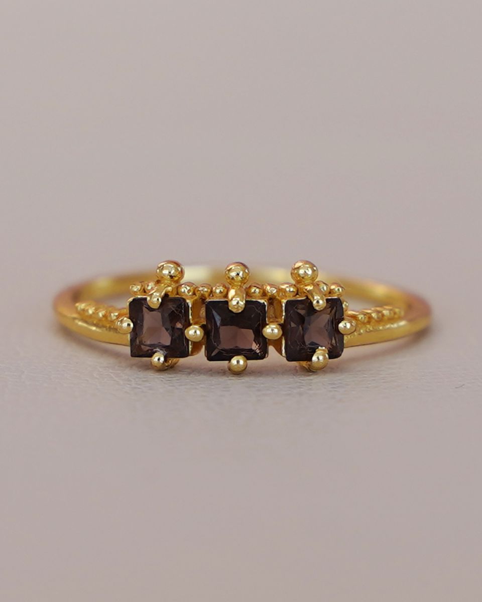 I - Ring Adelise size 50 square trio 3mm sm. quartz g.pl