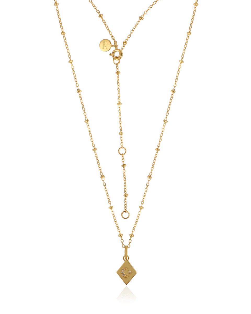 Collier with diamond shape white topaz with moon and tiny stones gold plated