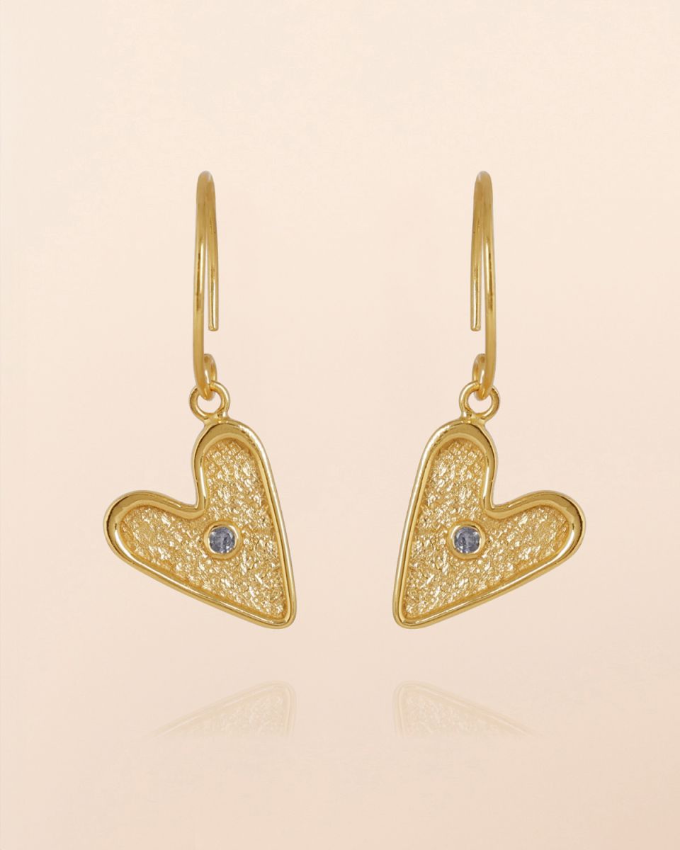 Earring with 2mm round tanzanite in oblique heart, gold plated
